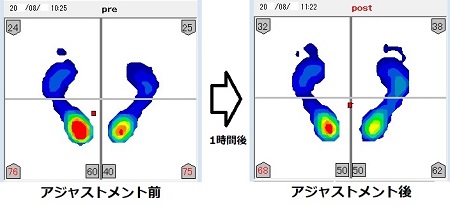 そしてやはり興味深いのが、アジャストメント後の計測時に、感覚として「立った感じが違う」「足の指が着いた」「前にスーッと引っ張られる」と感じる方が結構な頻度でいらっしゃるという事。